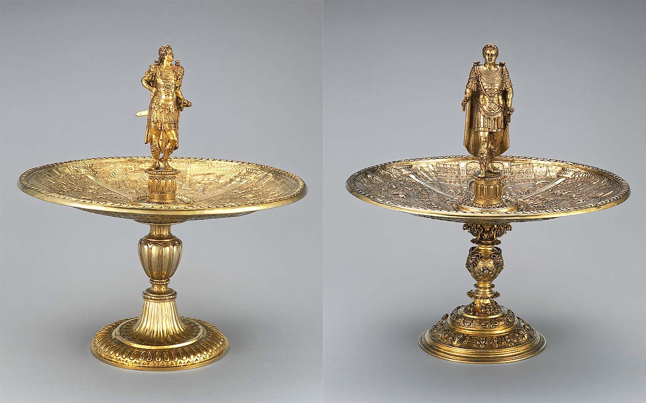 Two of the Aldobrandini Tazze on view in “The Silver Caesars: A Renaissance Mystery,” December 12, 2017-March 11, 2018, which was organized by Siemon. Left: Claudius tazza, Flemish, possibly Antwerp, late Sixteenth Century, circa 1587-99, gilded silver, 15⅞ inches tall. The Metropolitan Museum of Art, New York City, Wrightsman Fund, 2024 (2024.436). Right: Vitellius tazza, Flemish, possibly Antwerp, circa 1587-99, foot added after mid Nineteenth Century, gilded silver, 16⅛ inches tall. The Metropolitan Museum of Art, New York City, Fletcher Fund, 1945 (45.60.58a-h).