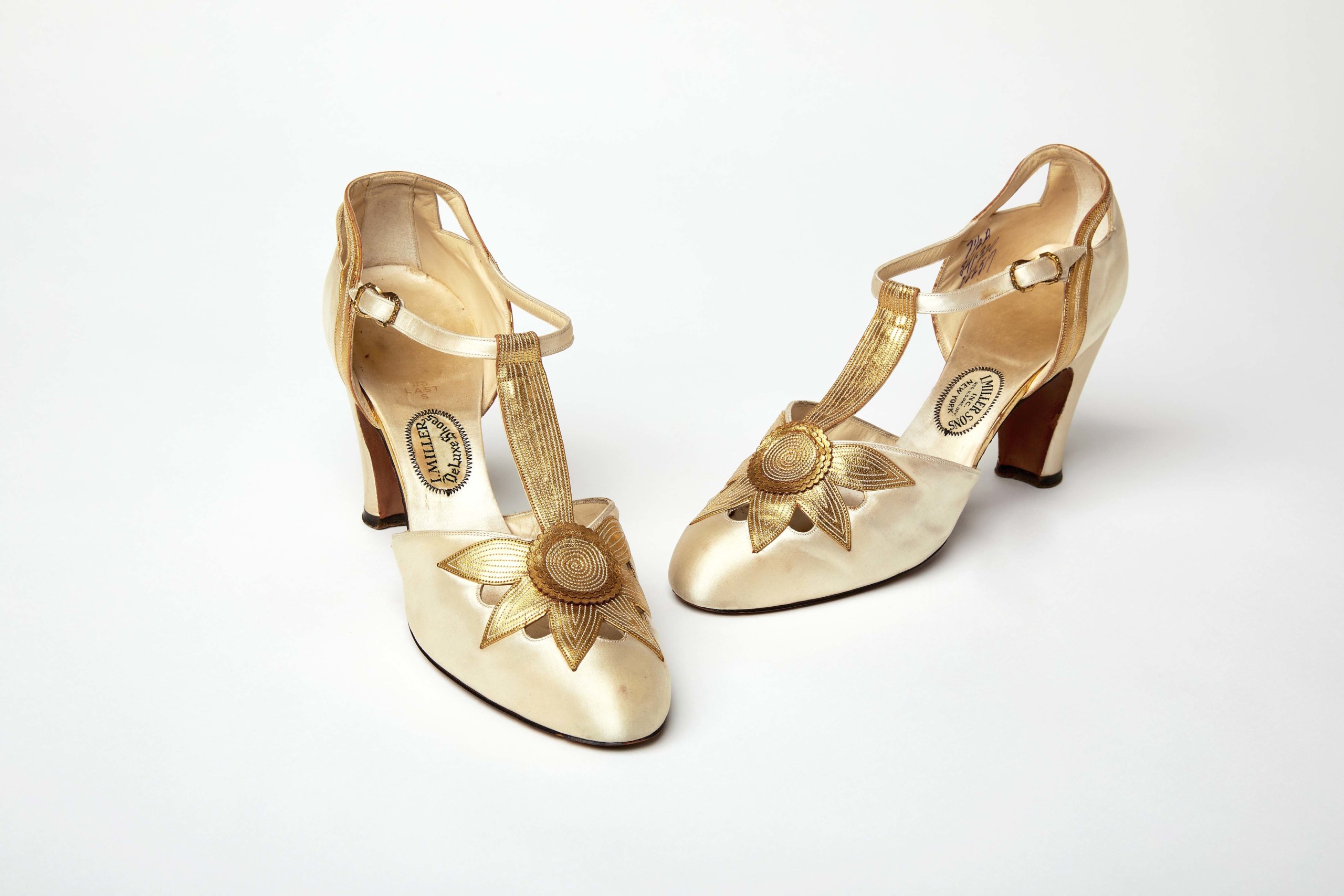 Shoes by I. Miller, mid 1920s, silk, satin and leather. Jimmy Raye Collection. Photograph by Joel Benjamin. Courtesy Bard Graduate Center. They will be on view in “Goddesses in the Machine: Fashion in American Silent Film” at the Bard Graduate Center from September 18 to January 3, 2027.