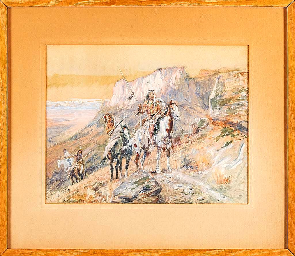 GREAT FALLS, MONT. — On March 20-21, Coeur d’Alene Art Auction and Coeur d’Alene Galleries presented the 39th annual March in Montana Auction & Dealer Show, which took place during the Western Art Week in Great Falls, Mont. The sale offered 718 lots across two days, and a watercolor by Charles M. Russell (1864-1926) sold during session two came away with top-lot status, far surpassing its $40/60,000 estimate to achieve $248,000 with premium. Titled “Scalp Hunters,” the work was dated “1906” and had provenance to Jack Stolz and Cynthia Bend, both of Afton, Minn. Additional highlights from both days of the sale will be featured in an upcoming issue.