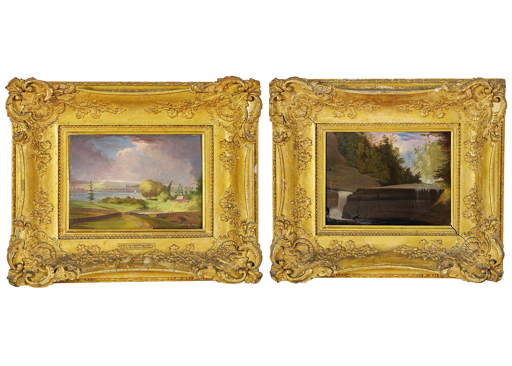 Sold together, Samuel F.B. Morse’s “A View of Cazenovia Lake” (left) and “View of Parapet Fall At Trenton” (right) outperformed their $3/5,000 estimate to hit $65,500, headlining the January 29 Americana auction.