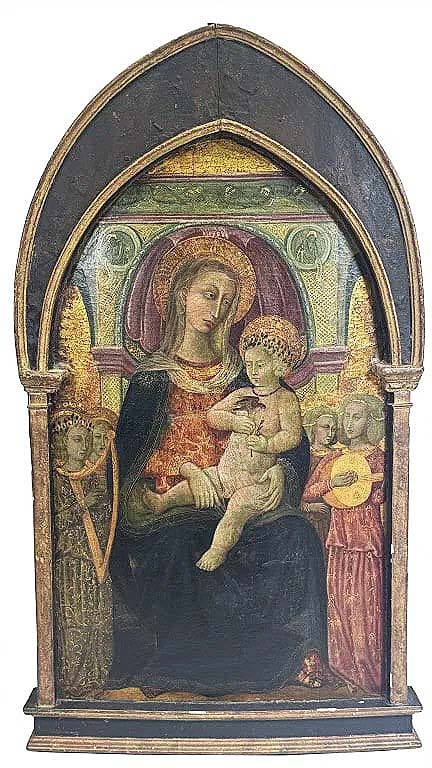 This Fifteenth Century Italian Gothic oil on panel depicting Madonna and Child flanked by minstrels took $31,200 ($3/6,000).