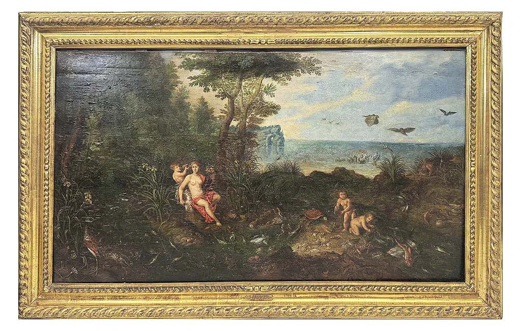 The top lot overall was an oil on panel by Jan Bruegel titled “Allegory of Water and Air,” which sold for $37,500 ($1/4,000).