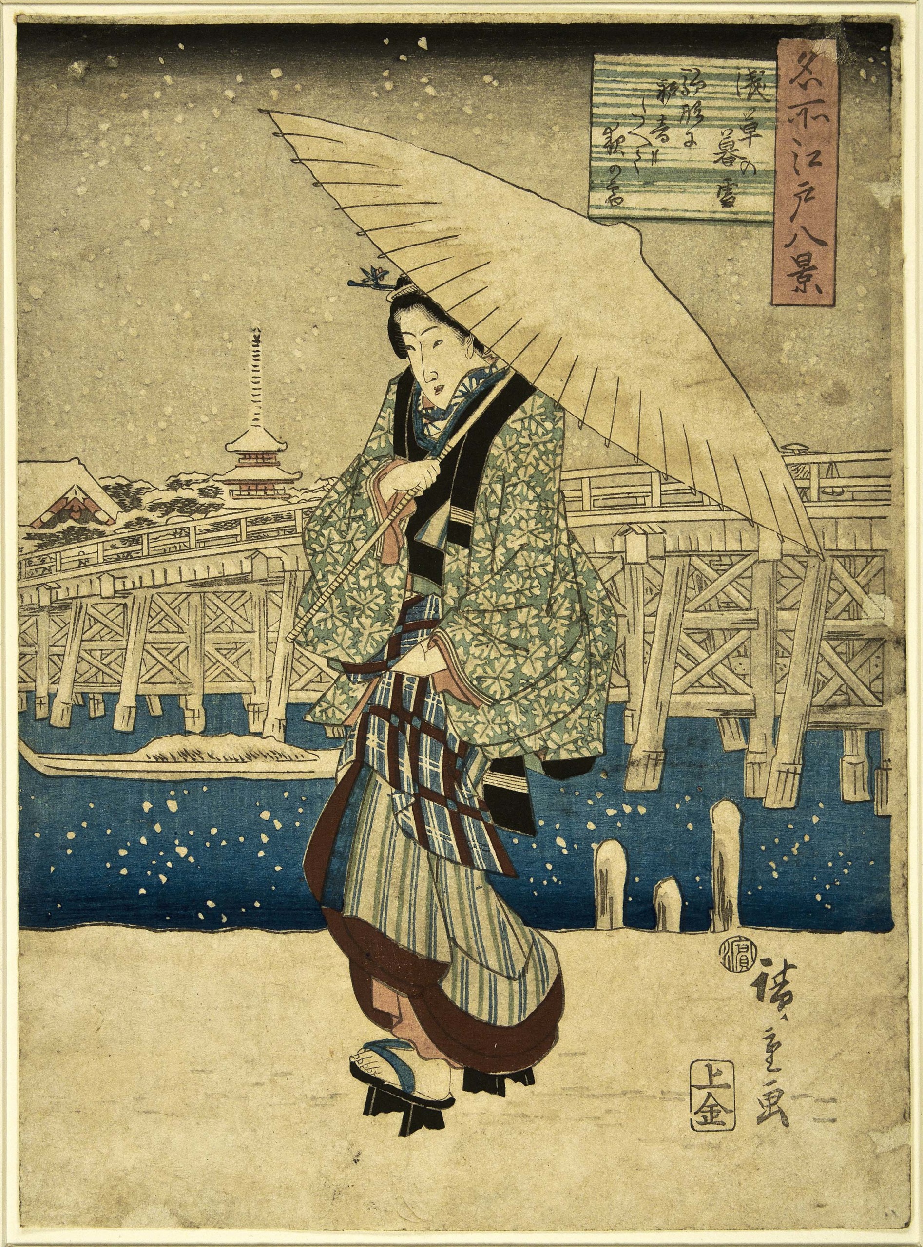 “Evening Snow at Asakusa” or “Woman with Umbrella” by Utagawa Hiroshige, from the series “Eight Views of the Environs of Edo,” Nineteenth Century.