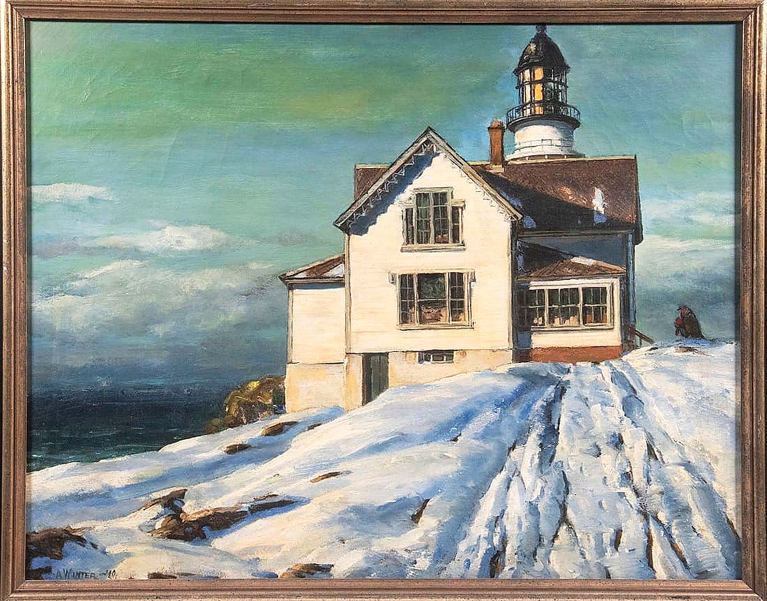 The top lot overall came on the sale’s final day, Sunday, as Blizzard Calvin was starting to wreak havoc in New England and down the coast to Delaware, dropping three feet of snow in parts of Rhode Island and Massachusetts. Crossing the block about two hours into the session was an oil on canvas painting by Andrew George Winter (American, 1893-1958) depicting a snowy landscape view of Captain Upton’s House in Cape Elizabeth, Maine, which attained $30,000. Seriously!