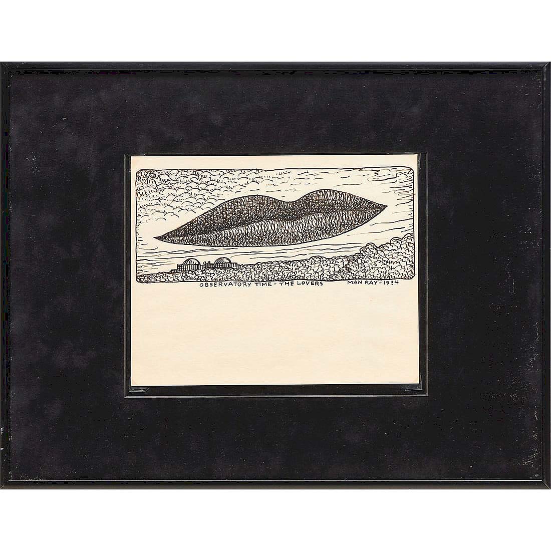 The highest price of day three, and the sale in its entirety, went to “Observatory Time – The Lovers” by Man Ray (Emmanuel Radnitzky) (American, 1890-1976), 1934, pen and ink, 14¼ by 18¼ inches framed, which earned $121,875 ($8/12,000).