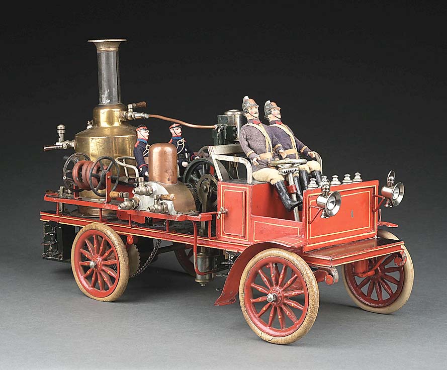Measuring 18 inches long, this Märklin functional live-steam-powered fire truck (Cat. Ref. 4070) with original hose reels and hoses, as well as four period firefighters and three contemporary firefighters, was one of the Sage collection’s premier pieces, and it sold for $98,400.