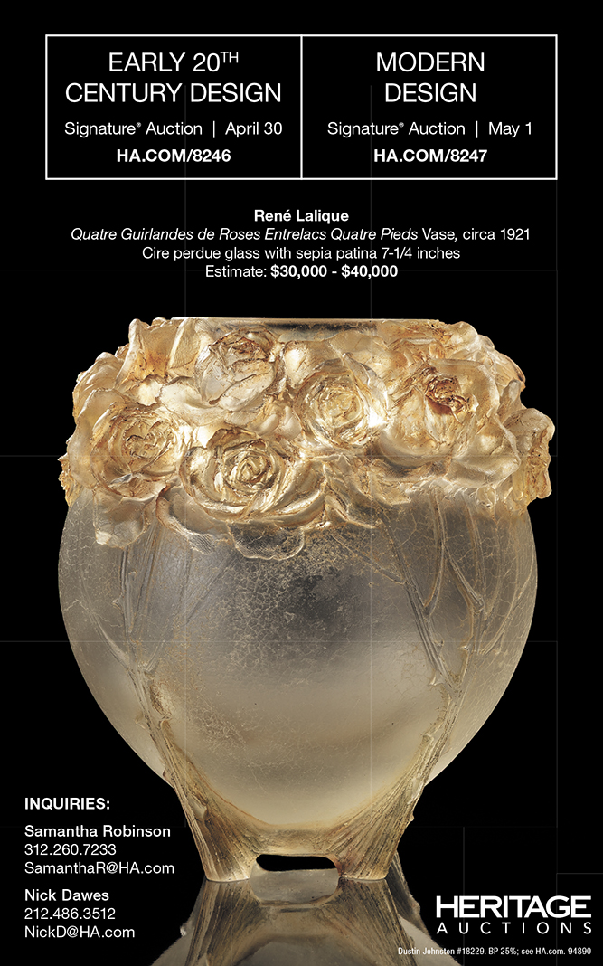 April 30 & May 1 heritage EARLY 20th CENTURY DESIGN Signature® Auction | April 30 HA.COM/8246 MODERN DESIGN Signature® Auction | May 1 HA.COM/8247 Rene Lalique Quatre Guirlandes de Roses […]