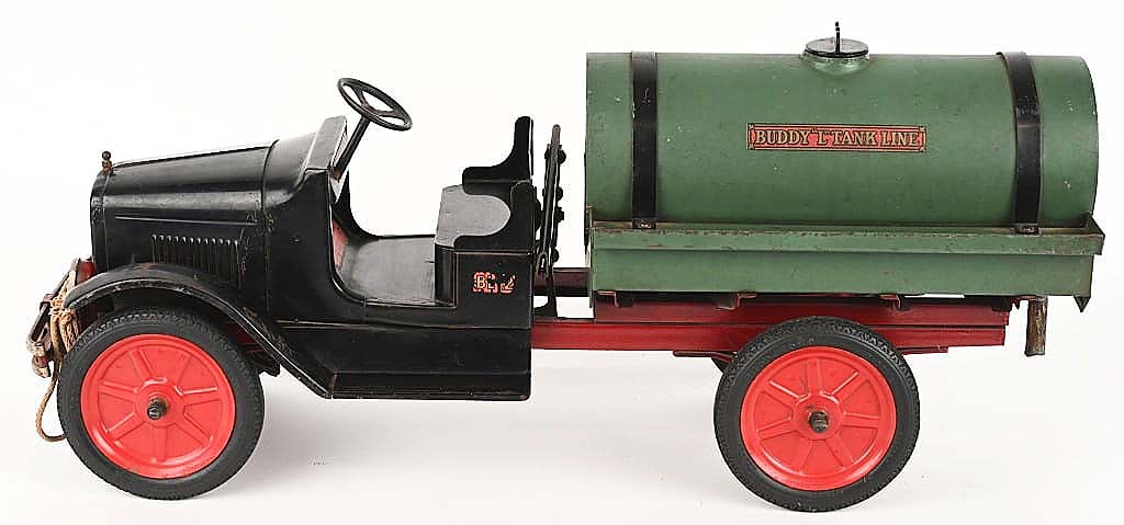 WILLOUGHBY, OHIO — A lifelong private collection of vintage toy trucks, featuring makers such as Tonka, Smith Miller, Cor Cor, Steelcraft, Marx, Hubley and Buddy L, was the focus of Milestone Auctions’ 1,000-lot New Year’s Two-Day Toy Truck Spectacular, January 10-11. Bidders drove a pressed steel Buddy L water service truck to top-lot status, achieving $18,000, including buyer’s premium ($3/4,000). The black, red and green truck, in original paint, had rubber tires, headlights and a bumper but was missing its sprinkler bar. Not including the original pull cord that was still attached, the truck measured 27 inches long. Further review of the two-day sale to come in a future issue.