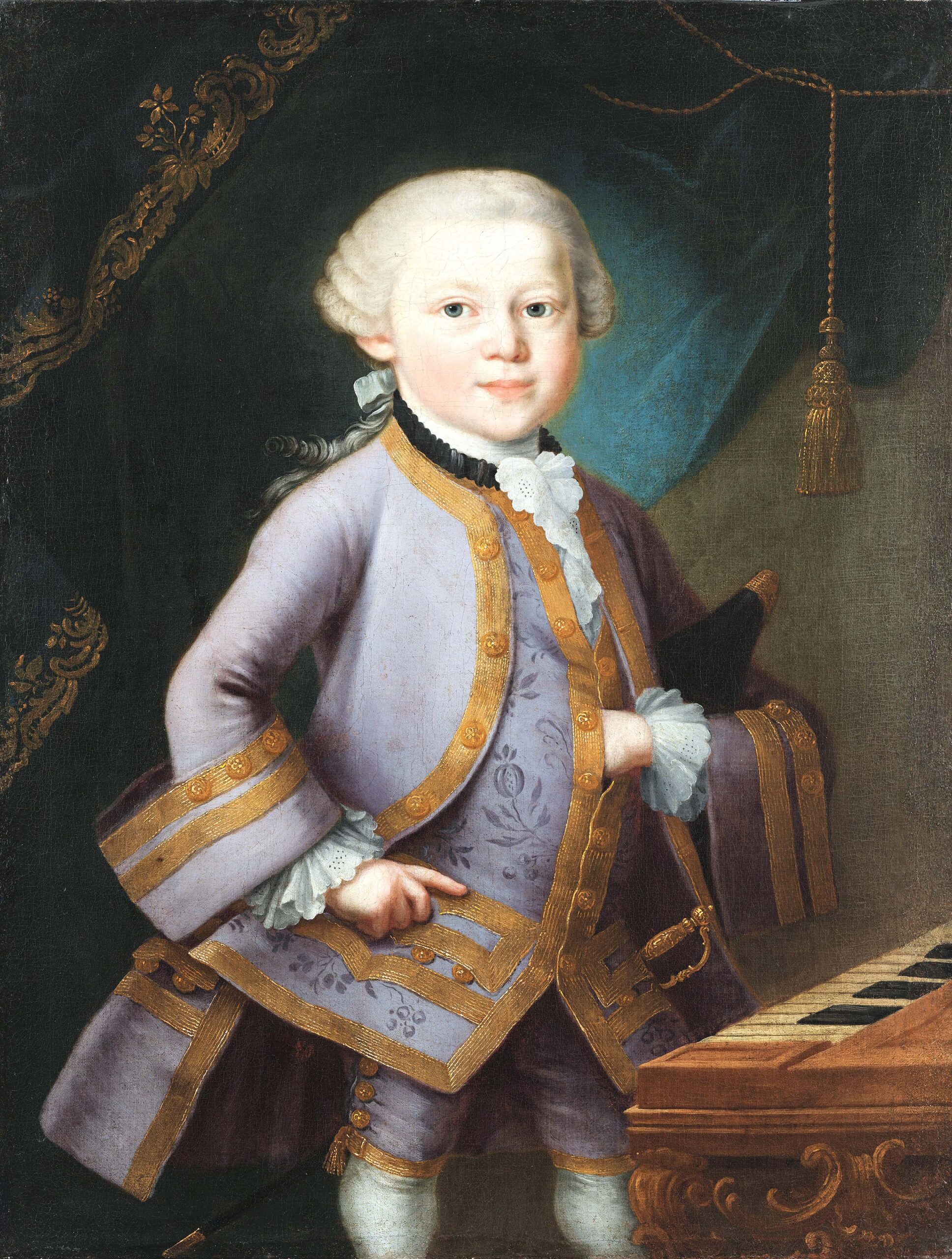 Mozart in Courtly Attire by Pietro Antonio Lorenzoni (1721-1782), Salzburg, 1763, oil on canvas. International Mozarteum Foundation Salzburg, Mozart Museums.