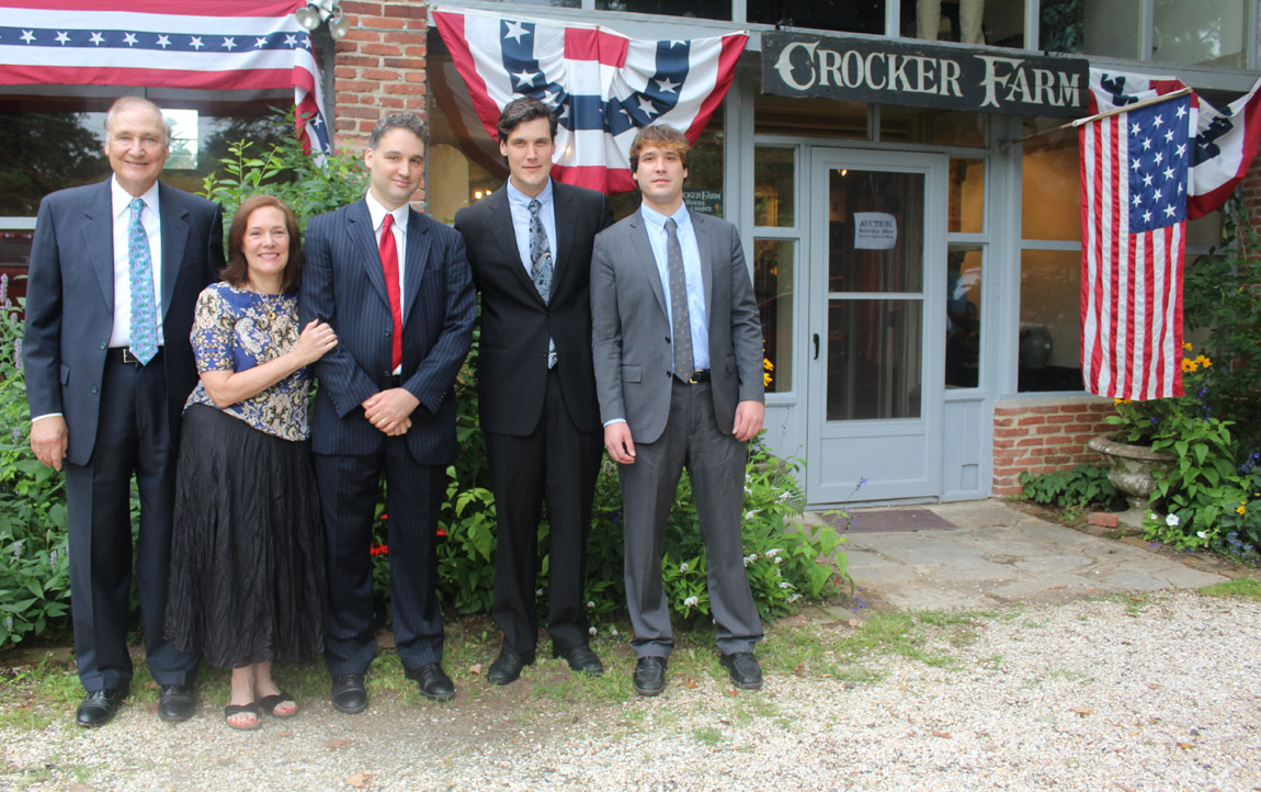 The business is a family affair, from left, Tony and Barbara Zipp and their sons Brandt, Luke and Mark outside the awesome venue for Crocker Farm sales, the 1841 Gorsuch Barn featuring original beams and flooring.