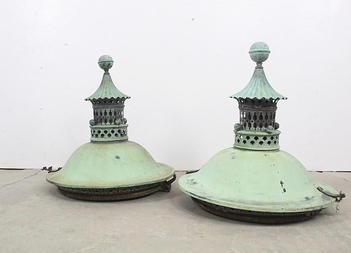 HUDSON, N.Y. – Topping the November 28 auction at Public Sale Auction House was a pair of antique industrial copper street lamp lantern tops that rose to $1,680 from an estimate of $50-$100. Described as having an old world charm, the pair measured about 2 feet high by 2 feet wide, with wonderful patina and in good condition for their age, despite being in parts. For information, 518-966-7253 or www.public-sale.com.
