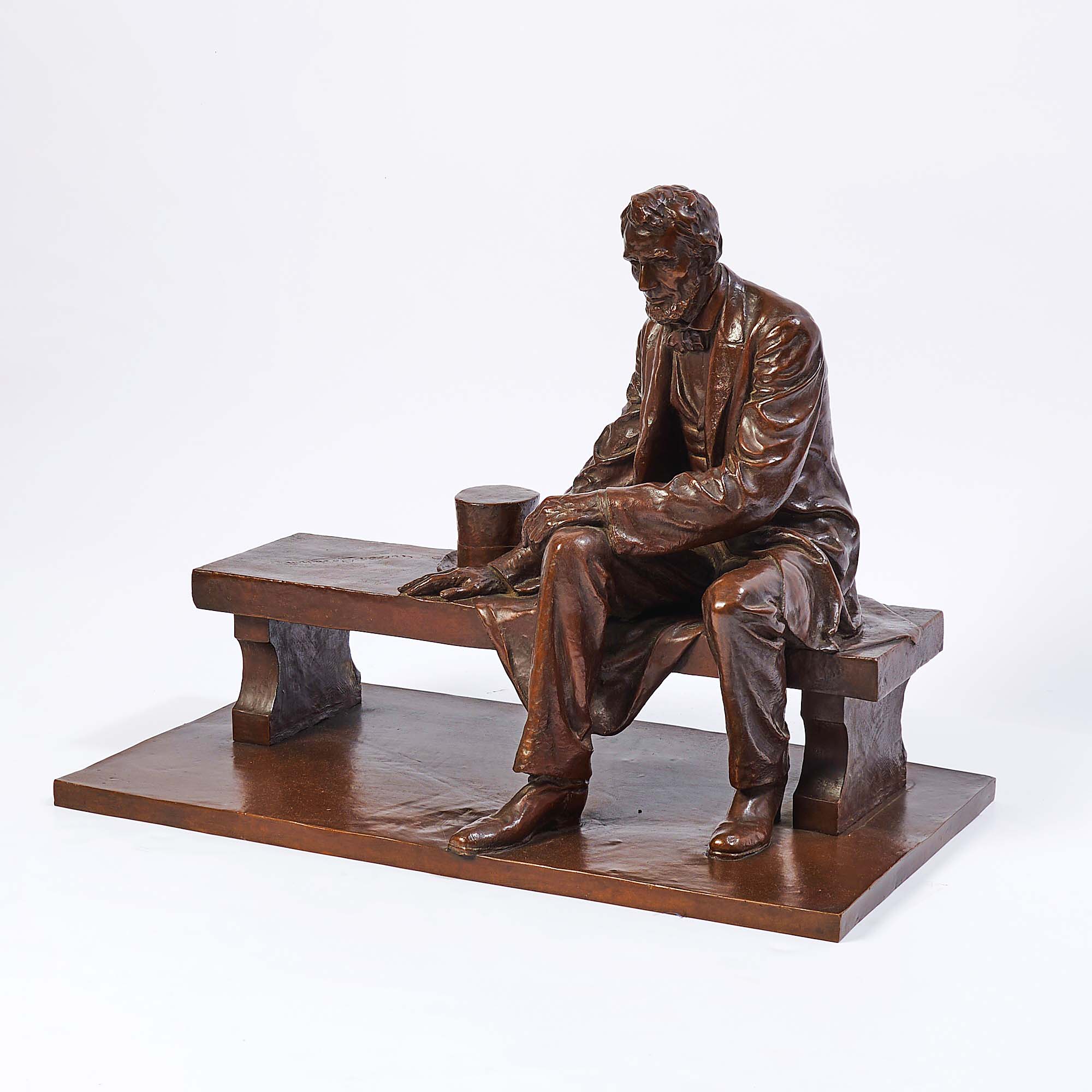 NEW YORK CITY — Though falling into neither titular category, a 1910 bronze of a seated Abraham Lincoln by Gutzon Borglum (1867-1941) achieved the highest price in Doyle’s October 9 American Paintings / American Silver auction. From a private California collection, this “Maquette for the Lincoln Memorial in Newark, New Jersey” was an early work by the artist who would later sculpt Mount Rushmore. Measuring 21⅞ inches tall, the sculpture surpassed its $50/80,000 estimate, selling for $89,400. For information, www.doyle.com or 212-427-2730.