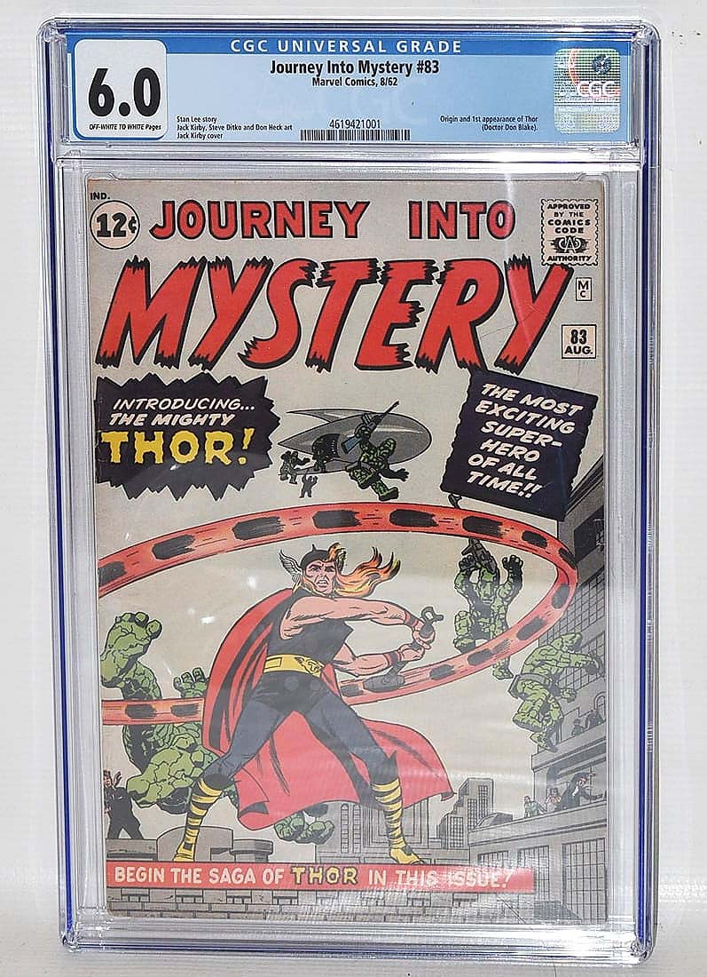 MIDDLETOWN, N.Y. — EstateOfMind conducted a two-session auction on October 11, featuring militaria, ephemera, firearms and taxidermy in the first session, followed by Americana, fine art, jewelry and collectables in the second. The sale’s leading lot, selling in the evening session, was Marvel’s Journey Into Mystery #83, the comic “Introducing The Mighty Thor!” From August 1962, the comic featured a story by Stan Lee, a cover by Jack Kirby and interior art by Kirby, Steve Ditko and Don Heck; this edition was graded 6.0 by CGC. An online bidder claimed the issue for $10,625. For information, www.estateofmind.biz or 845-386-4403.