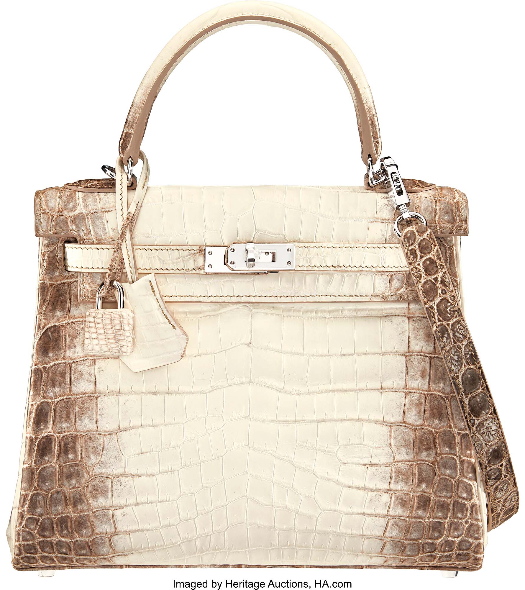 DALLAS — One of the rarest handbags ever created, the Hermès 25-centimeter matte White Himalaya Niloticus crocodile Kelly, dazzled bidders in Heritage’s October 9 Autumn Luxury Accessories Signature Auction, realizing $125,000 and leading the event to a $2,401,279 finish. A masterwork of craftsmanship and exquisite artisanry, the bag was fashioned from the hide of the Niloticus crocodile, whose scales are large and symmetrical, ensuring meticulous uniformity. The hide is hand-dyed and painstakingly bleached to create an ombre of smoky gray, which fades into a luminous white, evoking the snowcapped Himalayas. For information, www.ha.com or 214-528-3500.