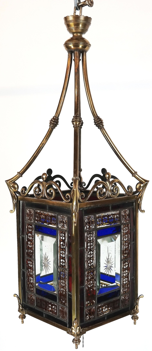 Fetching $10,000 was a Victorian brass and stained glass hall lantern, and selling for $8,750 a pair of palatial gilt and silvered bronze candelabra, each having seven arms around a center candle post on a Corinthian column base, also lit up action in the gallery.