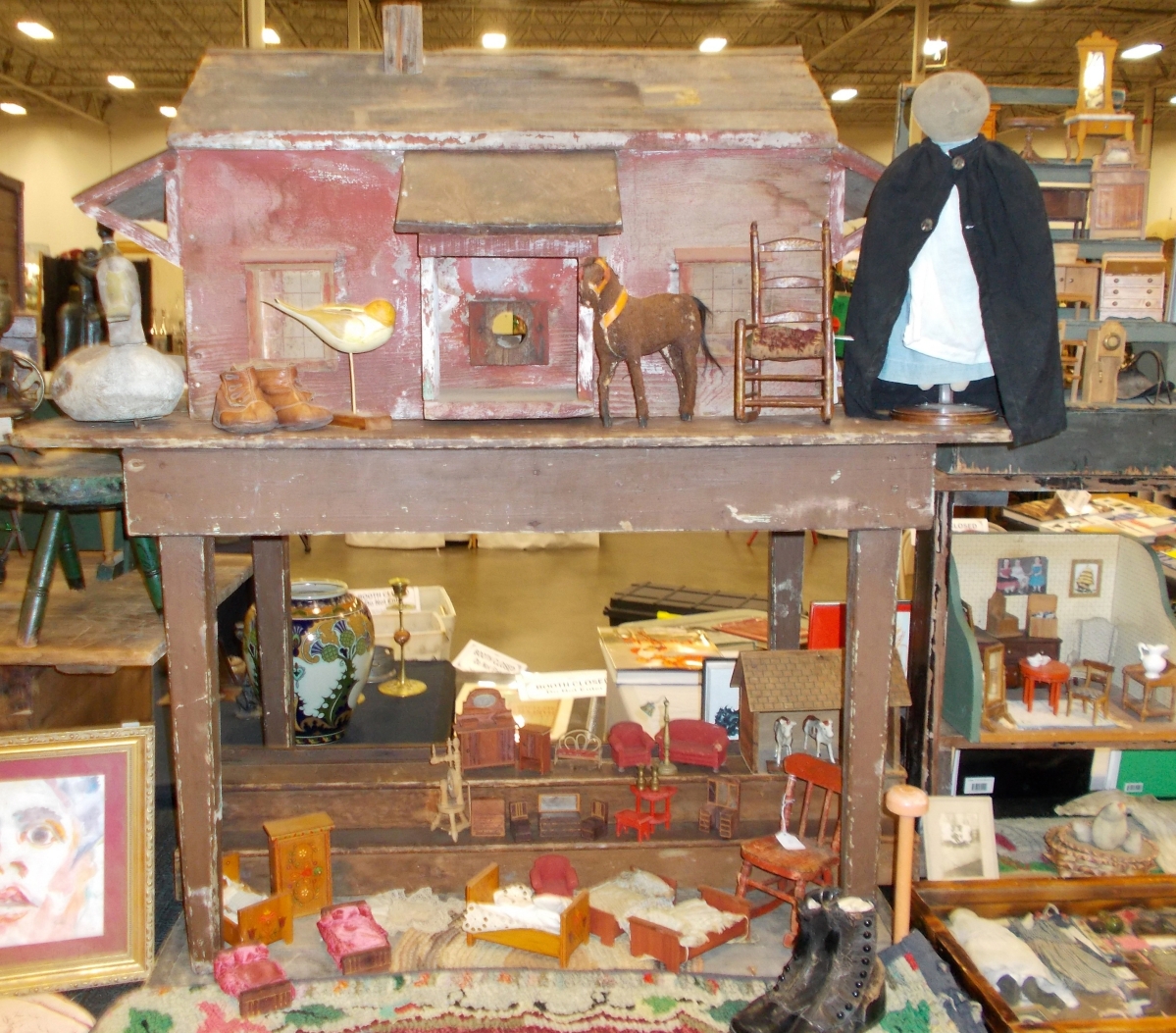 The Village Antiques, Syracuse, N.Y., fills its exhibit space with miniature things, just the stuff to furnish a house for people not much bigger than one or two feet tall, dolls and teddy bears that is. They also have a plethora of dolls and teddies along with the toys, all from about 100 years or older.