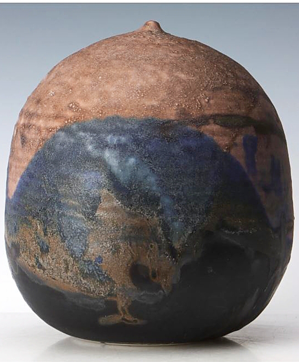 Toshiko Takaezu (American, 1922-2011) art pottery closed form glazed porcelain vessel, with rattle, incised signature, 6 ¾ by 5 ½ inches, sold for $6,250.