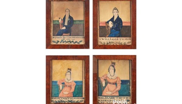 DOWNINGTOWN, PENN. — Four watercolor portraits of members of the Thurmond family, attributed to the Guilford Limner (South Carolina and Kentucky, active 1818-1833) achieved pride of place at the top of Pook...