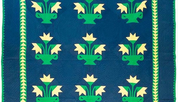 COLUMBUS, OHIO — An Amish pieced cotton quilt, made in the North Carolina Lily pattern with a Flying Geese border in Holmes County, Ohio, by Mary Miller, circa 1925, was one of the top lots in Amelia...