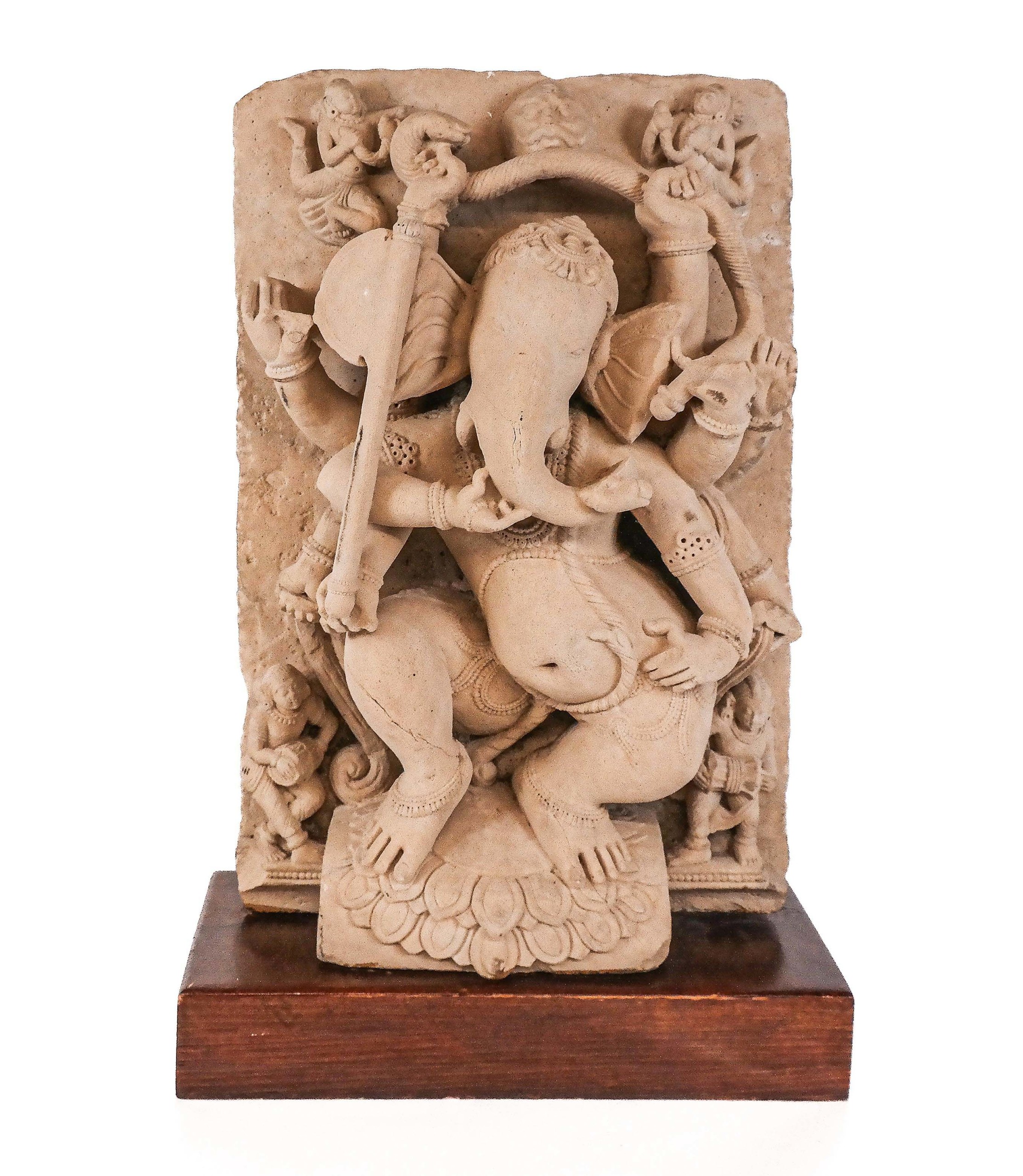 Also from the Columbia University collection was an Indian carved sandstone figure of a dancing Ganesha made in Rajasthan or Madhya Pradesh circa the Tenth Century, which went for $21,450. The statue had a carved sacred thread and contained two figures above Ganesha, likely Riddhi and Siddhi (Ganesha’s consorts), and two figures at the base, likely music-playing Ganas. A Khmer carved sandstone of Uma also did well. The Hindu figural sculpture, wearing a Baphuon-style sampot and headdress, was made circa the Eleventh Century in what is now modern-day Cambodia and rested on a later base. The work sold for $12, 350.