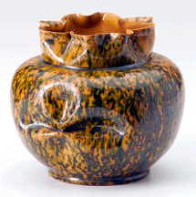 On September 17 and 18, Craftsman Auction, hosted by David Rago, Jerry Cohen and Suzanne Perrault, offered a select assortment of Arts and Crafts furniture and accessories that were well received by a large and enthusiastic audience. Prior to the sale, David Rago stated that he was expecting to realize $1.7 million from the 838 lots offered. A total of $2,283,583 was achieved with $1,955,670 resulting from the Saturday session alone. Bidder participation included 120 absentee, 140 phone and more than 500 on the Internet. Highlighting the auction were 30 select lots by Arts and Crafts period metal craftsman Marie Zimmermann. The collection was directly descended from the artist’s keepsakes of her own work, bequeathed to her lifelong house manager, Ida Egli, at the time of Zimmermann’s death in 1972. The rare pieces had remained in Egli’s possession until now. More than 50 museums contacted the auction house to inquire about the outstanding collection. According to Rago, collectors and museums hoped to find one or two pieces and were staggered at the concept of seeing so many examples in one place. Zimmermann’s work is currently owned by The Boston Museum of Art and The Metropolitan Museum in New York City, among others. The top lot of the Zimmermann pieces was an elaborately handcarved wooden box, 101/4 by 121/2 by 85/8 inches, that was studdedwith cabochon jewels of amethyst and semiprecious quartz. It stoodon round ivory ball feet with cast bronze handles and hinges with ahasp intricately fashioned in Egyptian motifs. The surface wasrichly painted in green, blue, red and yellow with black outliningand natural brown wood edges and the interior was lined in purplesilk with small medallion designs in Eastern taste. The rare box was pictured in the February 1922 issue of House and Garden, a copy of which was included with the sale of the item. Estimated at $30/50,000, it realized an astounding $117,500, a record price for the artist’s work. The previous record for Zimmermann was established in 1989 at Sotheby’s when a large covered silver jar sold for $49,500. Offered for the first time in 63 years was a group of exceptional collection of Rookwood. These were one-of-a-kind pieces that were considered so unique that they reportedly went directly to the Cincinnati Museum. In 1942 they were sold at B. Altman’s in New York City and were purchased at that time by the consignor. Chief among them was a fine Standard glaze tall vase with bronze overlay decorated by Kataro Shiravamadani with an understated Japanese scene of a fish and sea plants, 1889. Aggressive bidding on the 12-inch vase brought the total to $36,425, against a presale estimate of $6/9,000. In general, pottery sold well. Among the other notable lots was a bulbous vase by George Ohr. The 6-inch-tall piece with a scalloped rim and floriform dimple on the front was covered in a green and gunmetal brown and amber mottled glaze. It was sold with a handwritten letter and poem signed by Ohr and dated 1899, as well as a newspaper clipping relating a conversation between potter Jules Garby and Ohr. Estimated at $4/5,000, the lot opened at $12,000 and galloped to a staggering $32,313. A 42-piece third-generation private pottery collection formedin the 1880s featured an extraordinary John Bennett large 15-inchcovered jar painted with branches of yellow dogwood and red roseson a dramatic black ground. The interior of the lid showedblack-eyed Susans on a golden ground. Signed “Bennett New York,1881,” the jar sold at more than four times the estimates at$64,625. From the same collection came a vase by Elizabeth and Hannah Overbeck decorated with heavily stylized Queen Anne’s lace blossoms in mottled brown, cherry red and turquoise on a brown and mauve ground. More than doubling estimates, the lot was hammered down at $24,675. Among a selection of Grueby was a spherical vase by Ruth Erickson with a closed-in rim surrounded with tooled and applied full height green leaves on a blue green ground. Cataloged as “a most successful piece in shape, design, and color,” it was the first one like it that the auction house had ever seen. Marked with a circular stamp and paper label, the vase commanded $25,850. Tiffany took center stage with a fine lady’s version desk set that was consigned after surfacing at a Monday appraisal day at Rago’s. It consisted of 12 pieces set in Mosaic pattern enamel and each piece was marked “Louis C. Tiffany Furnaces” and realized $35,250 against a presale estimate of $4/6,000. Other accessories of interest included a Jesse Preston four-branch bronze candelabra with trumpet flowers on swirling stems attached to a free-form organic Art Nouveau base that brought $10,575. Lamps included a rare Roycroft table lamp designed and executed by Dard Hunter with a sloping circular leaded glass shade in a stylized pattern of fruit and foliage in yellow and green slag glass. The ceramic base was molded with salamanders and covered in a matte green glaze. Rago commented that very few of Hunter’s ceramic works are still in existence. The lamp opened at $27,500 and finished at $76,375, easily surpassing the high estimate of $50,000. An unusual Gorham table lamp with an asymmetrically bordered leaded glass shade of white and pink cyclamen blossoms and green leaves on a foliate base more than doubled estimates at $14,100. Gustav Stickley topped the furniture selection with a largeserver, circa 1902, attracting the lion’s share of attention. Withchamfered sides and two small drawers over a single long drawer,wooden pyramidal knobs and a dark brown original finish, the piecewas estimated at $20/30,000. Bidding on the lot was brisk with itselling at $58,750. A price of $26,438 was paid for a Gustav Stickley even-arm crib settle with canted sides in original finish, while a Roycroft hand tooled and embossed leather covered chair with vertical seat-rail slats and tapered legs had a carved orb and cross mark broug