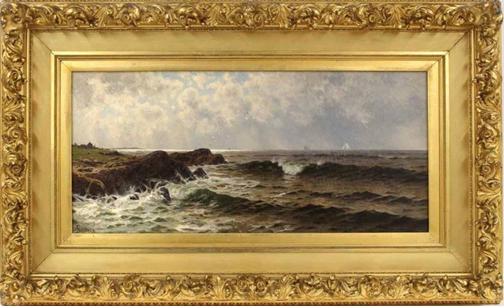The highest priced item in the sale was a painting of a scene along the Atlantic coastline between Thatcher Island and Twin Lights, Gloucester, Mass., with sailboats in the distance. Done by Alfred Thompson Bricher, it realized $30,000.
