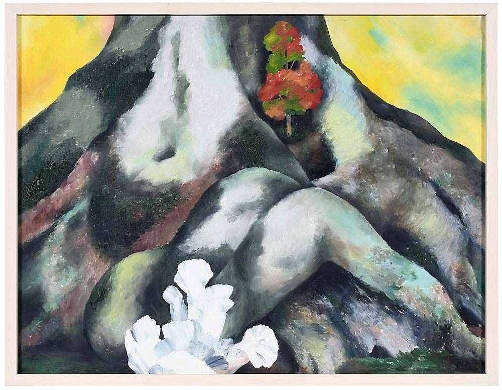 In comparison, David Burliuk’s (Russian/American, 1882-1967) “Mathilde Haslauer by the Sea” bore an undated Christie’s label on its verso and sold for $23,370. Ida Ten Eyck O’Keeffe’s (American, 1889-1961) “Roots in Autumn” is one of two virtually identical paintings of the Royal Oak that relate to a larger version painted by O’Keeffe that is owned privately. The sister example, which was noted to have had extensive publication and exhibition history, brought $13,750 when it was sold at Christie’s in 2021; the painting Brunk offered achieved $23,370 and sold to a private collector bidding on the phone.
