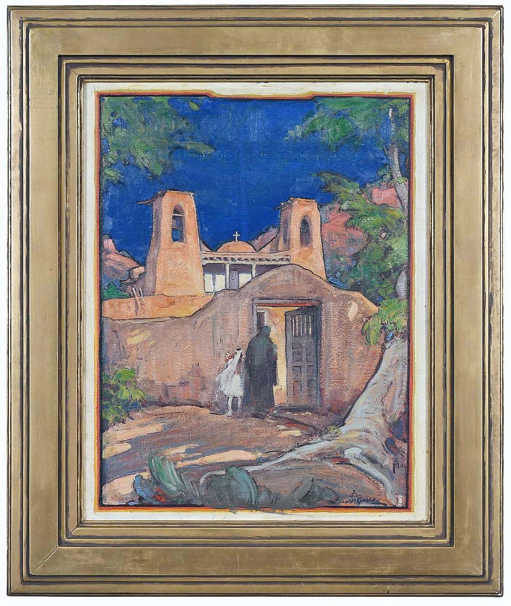 “New Mexico Mission,” an oil on canvas composition by Gerald Ira Diamond Cassidy (American, 1869-1934), was similarly purchased for $24,600. The same price was paid by a private collector for John Sloan’s (American, 1871-1951) “Sally, Sarah, and Sadie, Peter and Paul.” Its history boasted no fewer than 14 museum exhibitions and provenance to the Kraushaar Galleries in New York City.