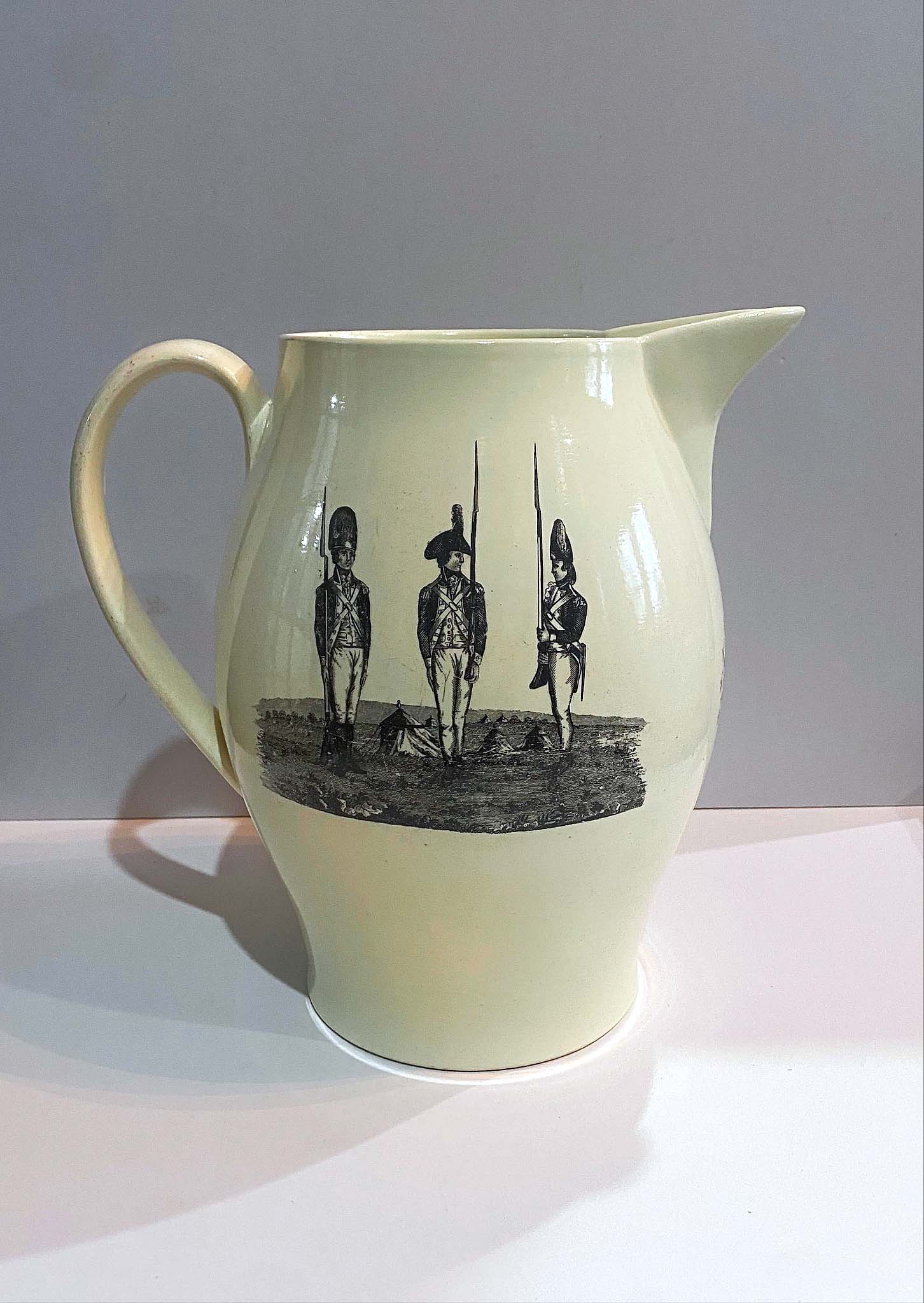 Priced at $2,950, this circa 1800 Staffordshire creamware Liverpool pitcher, complete with American soldiers on one side and a soldier’s farewell on its reverse, belonged to David M. Kurau, Collegeville, Penn.