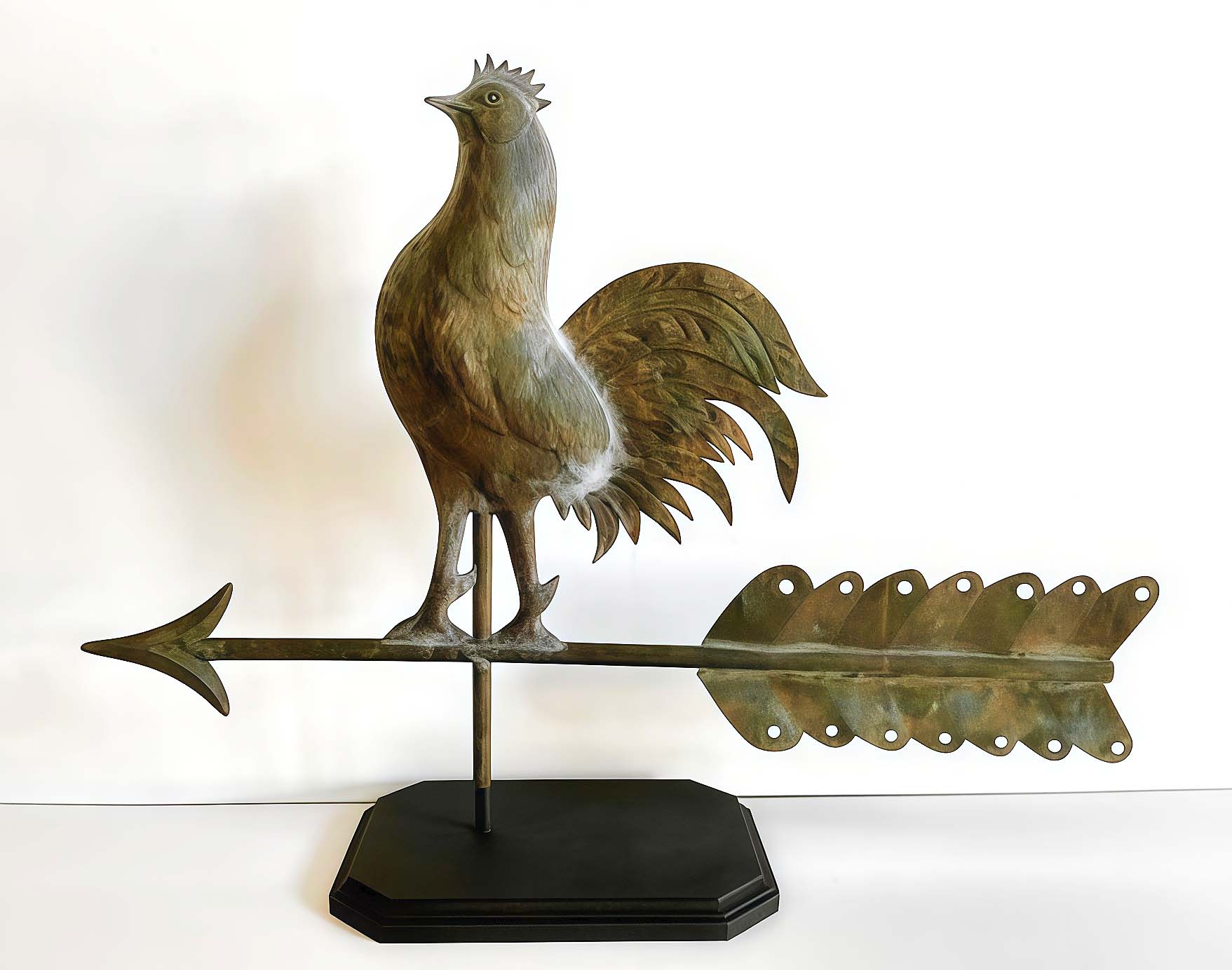 Although this Nineteenth Century copper rooster weathervane with weathered patina was just acquired by Craig Cheney from a collector who was downsizing, it quickly sold on the first day. Nancy and Craig Cheney Art and Antiques, Mansfield, Ohio.
