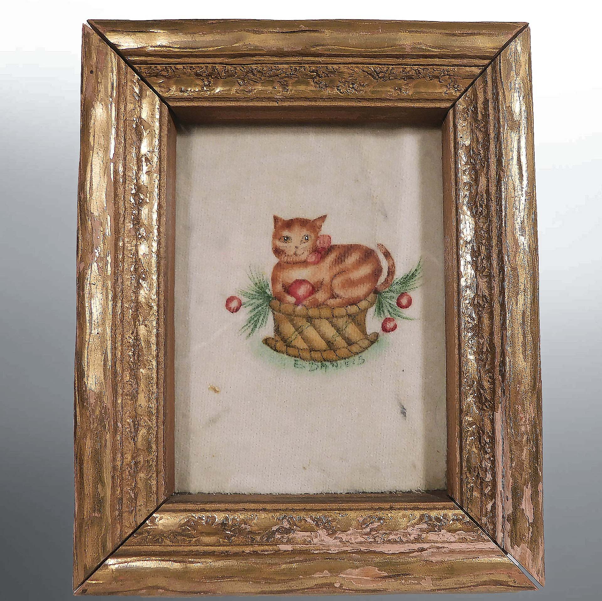 Home Farm Antiques, Bolton Landing, N.Y., is run by Pat Martin, who has participated in Fox Valley Online for a few years. She had already sold a German candy container in the shape of a snowy tree trunk with a robin by the time this reporter browsed her offerings and had a Victorian Christmas cat theorem reserved, which she reported later sold. Martin added, “I saw Christmas being sold. Also, historic photography, ephemera and small-sized antique artwork, such as theorems, samplers and paintings. I sent packages out mostly to the Mid-Atlantic states and the Midwest this year.”