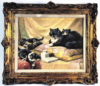 Leon Huber “Cats in a Basket” oil painting