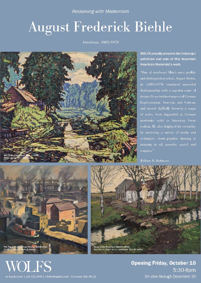 “One of northeast Ohio’s most prolific and distinguished artists, August Biehle, Jr. (1885-1979) combined masterful draftsmanship with a superior sense of design. He assimilated aspects of German Expressionism, Fauvism, and Cubism, and moved skillfully between a range of styles, from Jugendstil (a German modernist style) to American Scene realism. He also displayed his versatility by mastering a variety of media and techniques, from graphite drawing to painting in oil, gouache, pastel, and tempera.”