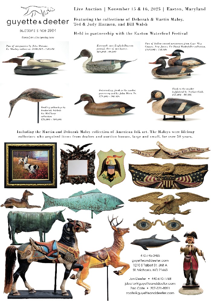Including the Martin and Deborah Maloy collection of American folk art. The Maloys were lifelong collectors who acquired items from dealers and auction houses, large and small, for over 50 years.