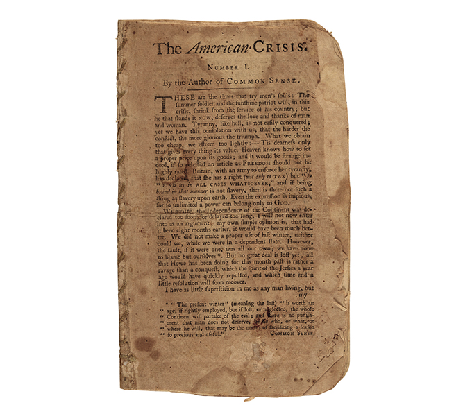 THESE ARE THE TIMES THAT TRY MEN’S SOULS… PAINE, THOMAS. 1737-1809. The American Crisis. $80,000 – 120,000