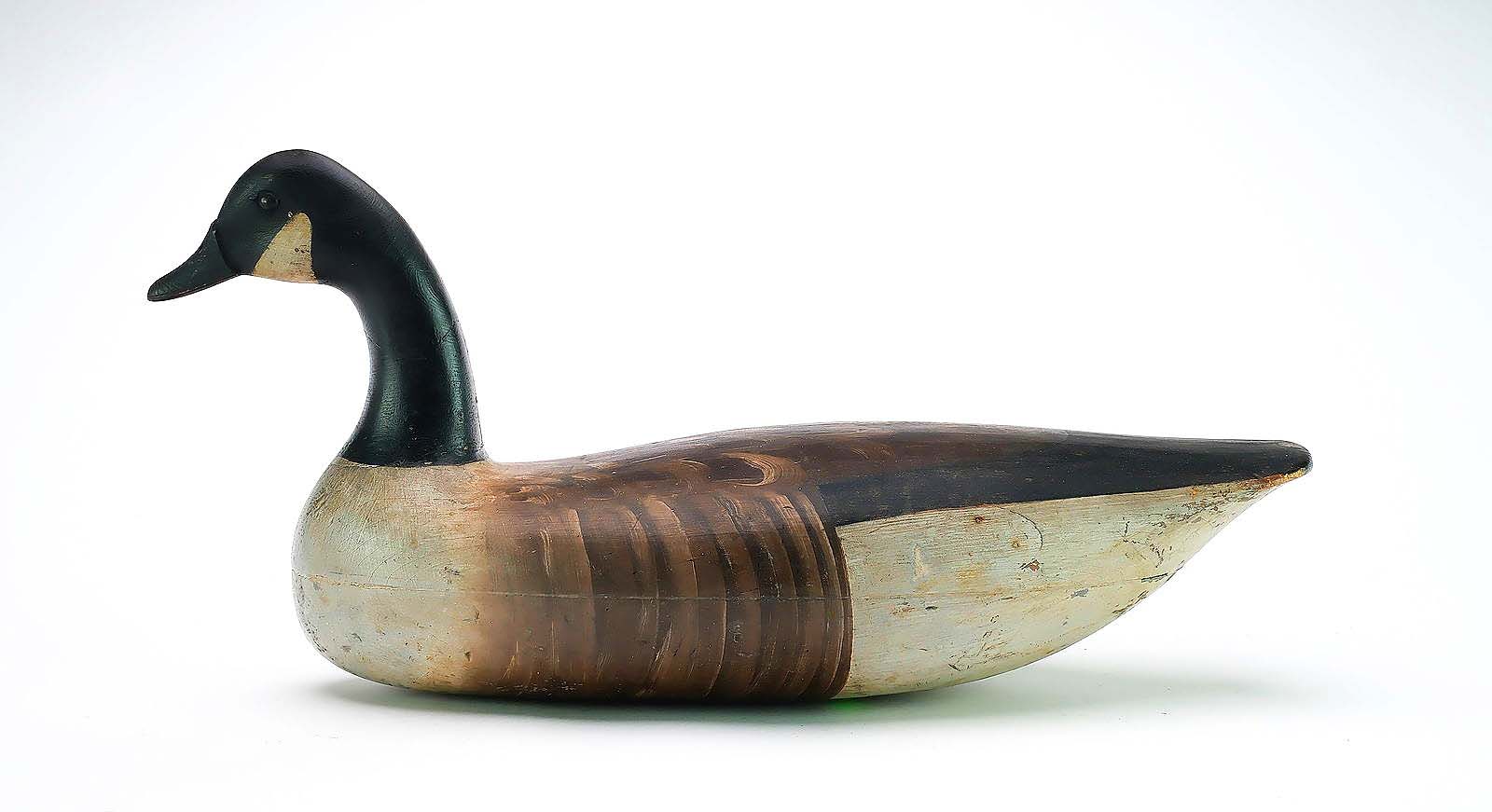 EASTON, MD. — Two days and 678 lots made up Guyette & Deeter’s Decoys and Sporting Art Auction, conducted November 15-16 at The Country School in honor of the 2025 Easton Waterfowl Festival. A hollow-carved Canada goose decoy made by Harry M. Shourds (1890-1943) of Ocean City, N.J., flew to the highest price on day two, selling for $39,000 with premium. The bird had “excellent paint detail” and an ink Mackey collection stamp on its underside, indicating its provenance to the William J. Mackey, Jr, collection. It was retained by the Mackeys until 2007, when it was acquired by a private Southwest collection. Additional highlights from both days of the sale will be featured in an upcoming issue.