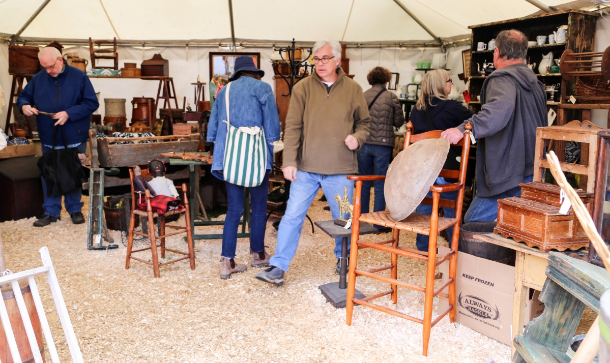 The 150-dealer show sees a good mix of Americana, folk art, advertising, country primitives, Midcentury Modern, silver, brassware, stoneware, decorative items, clothing toys, games and collectibles.