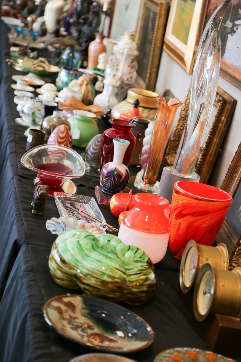 The skies opened up with intermittent rain about an hour so later and may have deterred some of the “lookers” who prefer to shop on a sunny day, but did not much hamper the dedicated “hunter/gatherers.” “Our feedback from the dealers was all positive,” said Kate the following week. “Many told us it was the best show they’ve done in a long time.”