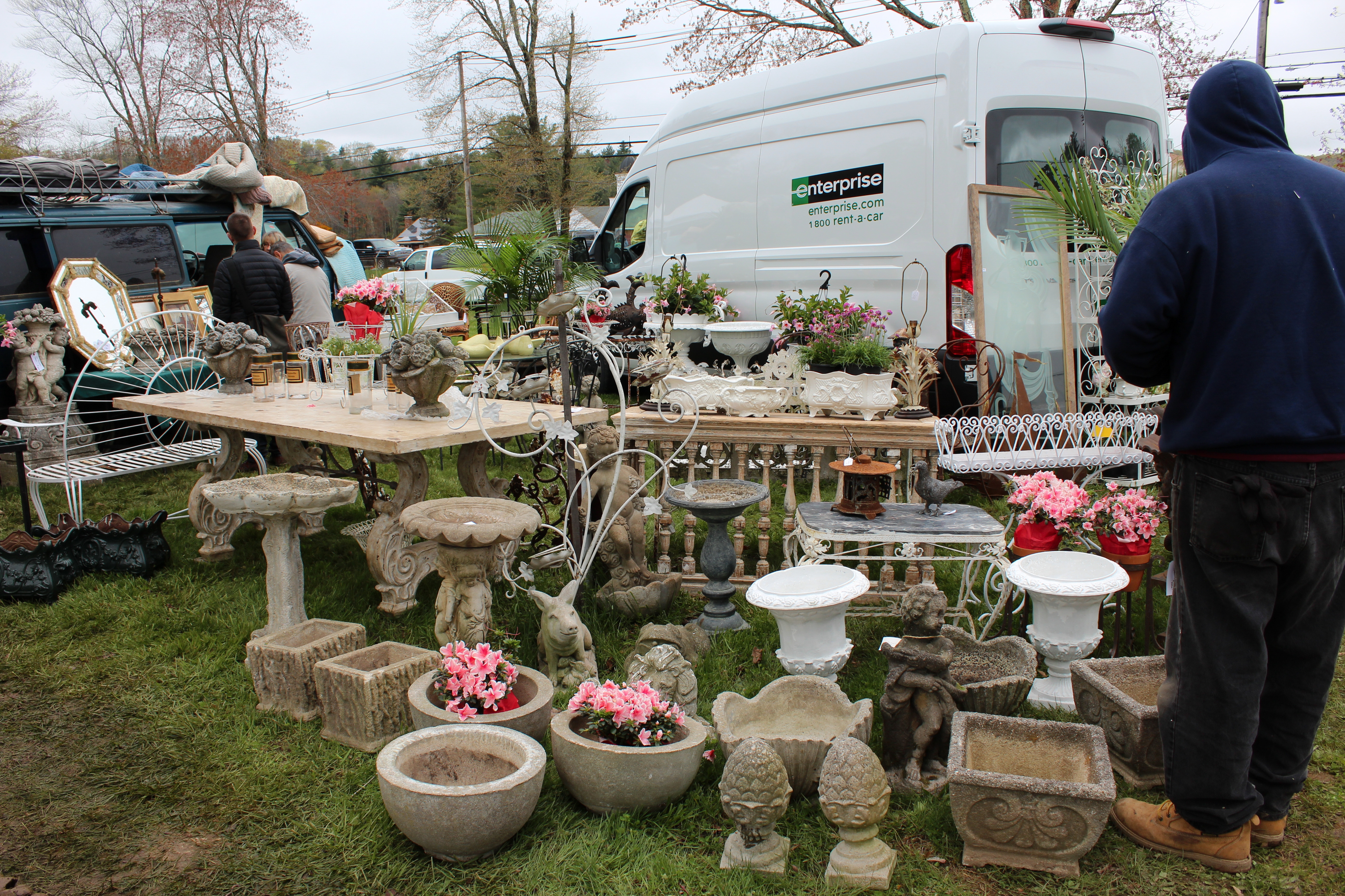 That said, because large parts of the field were simply too soggy to set up in, the market had large gaps and several vendors who are normally there were no-where to be seen. Others who were able to show up sought drier ground from where they are typically assigned, and many vendors opted to sell straight out of their vans and trailers. “At least we are open,” was another frequently heard comment, a reference to the closure of the field across the street, Brimfield Acres North, which usually opens up before 6 am, stayed closed until 1 pm.