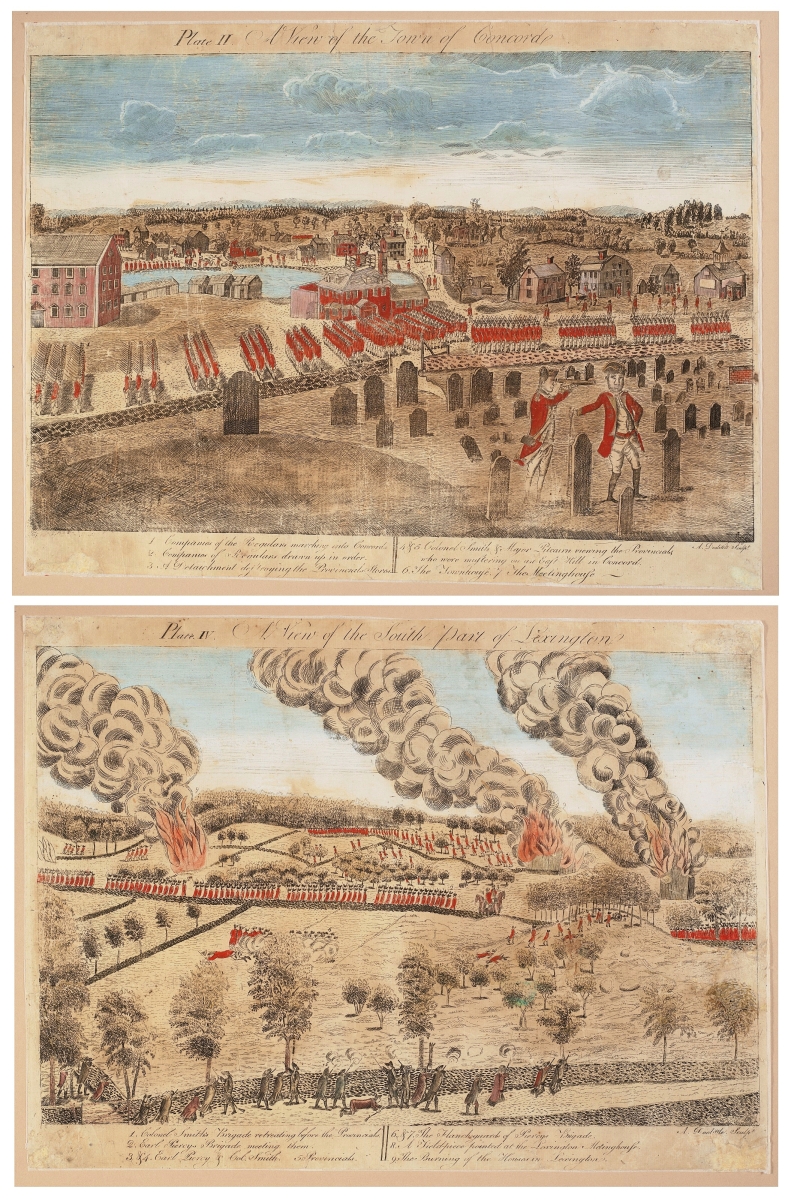 The second highest price of the various owners’ Americana sale were these two contemporary Revolutionary War-era engraved views of the Town of Concord and the south part of Lexington by Amos Doolittle. Estimated at $700/900,000, they sold for $750,000.