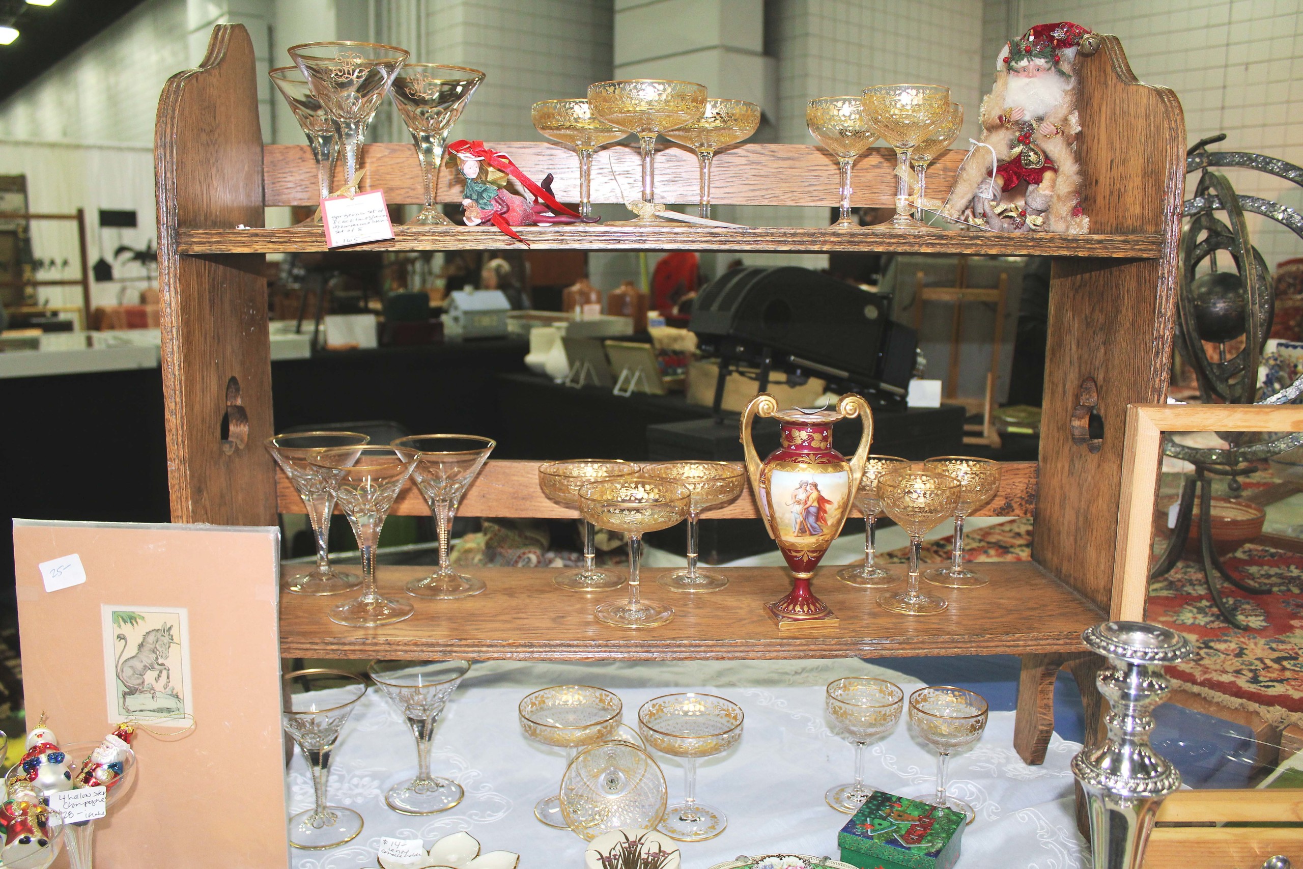 Three booths on one row, towards the back of the show, were each staffed by first-time dealers from Maine: Gayle Garber (Maine Cottage Antiques), Helen Robinson (Trifles) and Deirdre O’Callaghan (Partridge Hill Antiques). Garber had a set of Bohemian glassware she’d recently acquired from local musician Dan Crewe. She thought they were made by Moser, and it was the first time she’d had them out at a show.