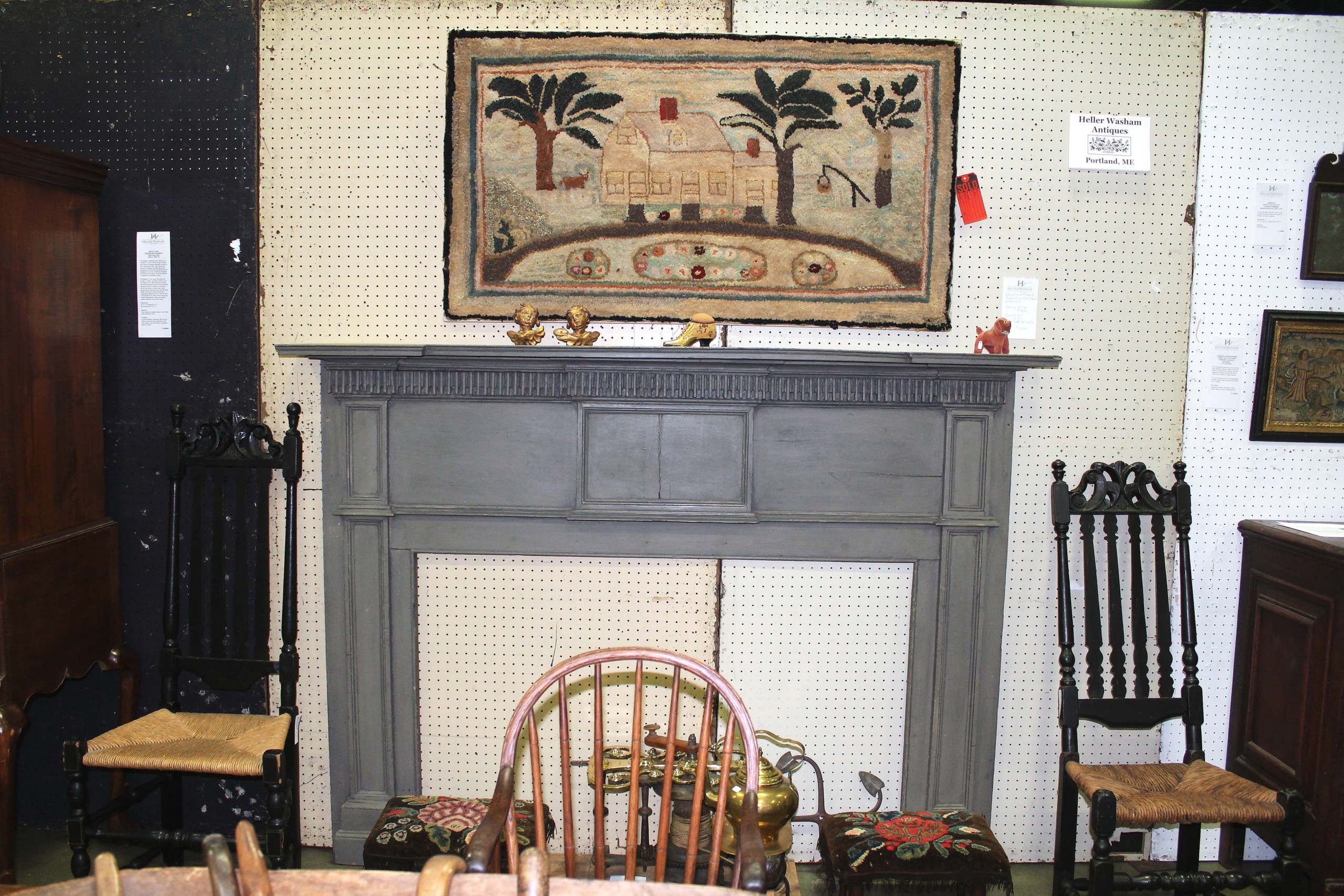Don Heller and Kim Washburn had a large booth in the center of the floor and brought several high style. We spotted red “sold” tags on a hooked rug that showed a house in a landscape and hung above a painted fireplace surround and on a large two-handled basket. One of their exceptional pieces was a New England Pilgrim Century red-painted chest of drawers that came from the Newbury, Mass., collection of John and Marie-Teresa Vander Sande and was published in volume five of American Antiques from the Israel Sack Collection.