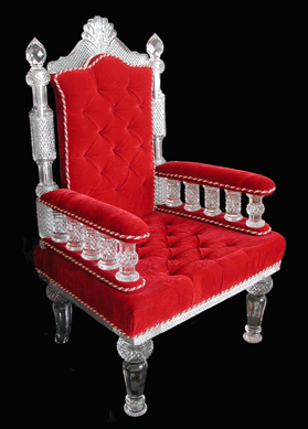 Prominently featured at the entryway to the museum is a cut glass armchair in the style of glass furniture made during the late Nineteenth and early Twentieth Centuries by F. & C. Osler of Birmingham, England. This glass was displayed at many international exhibitions. It furnished the palaces of several Indian potentates and was featured in a special exhibition at the Corning Museum of Glass in 2006.