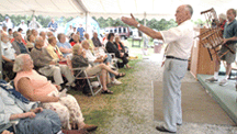 Gearing up for Antiques Week in New Hampshire, auctioneer Richard Withington got the ball rolling with a good country estate auction at his Northfield barn. The auction served up a quality assortment of antiques from “several fine homes” and buyers were out in droves to take a shot at the merchandise. This was Withington’s 2,424th auction and the auctioneer, now well into his 80s, commented prior to the sale, “I never felt better in my life. I don’t do this for the money,” he said with a gleam in his eye, “I do this for the action.” Holding court in the front of his auction barn for more than an hour prior to the sale, Withington greeted, laughed with and cajoled customers old and new, and young and old. Moments before the auction was to begin, the auctioneer tried to refuse an offer for a severely worn Oriental carpet that had been on the floor of the barn for many years. “I can’t sell that,” Withington exclaimed, but just as quickly he asked what the fellow might “give for it.” After a moments contemplation on the offer, another gleam appeared in his eye and the auctioneer was calling out to his men to “roll the rug up.” The first lots of the auction came from a large selection ofreference, antique and general books along with as assortment ofauction catalogs. The first lot up was Withington’s own book thatfeatured a vast selection of furniture that he had sold over theyears with photographs of the items and the dates and amounts thatthey sold for. The book has brought up to $155 in the past,according to the auctioneer, yet this one hammered down at $99. Many of the same pieces that were pictured in the book were being sold again at this auction with Withington openly commenting to the crowd, “I like to sell the better things to the older people – that way I get to sell them again. Worked well this time,” he said with a wry smile that attracted a good round of laughter from the crowd. Slowed by the computer several times throughout the auction, Withington stopped the auction to recall the old days when he knew everyone’s name and called it out when the lot was sold. “We didn’t even use bid numbers,” he said. Withington still refuses to accept either phone or absentee bids. In the age-old fashion, the auctioneer gathered the crowd that was interested in the 20 or 30 lots of books around him at the front of the tent and got the sale underway. Standing in their midst, the auctioneer sold lot after lot with equal vigor. Books brought from $33 for a box lot to $550 for a pair of botanical volumes. When the books were finished, the auctioneer got the crowdback in their seats and proceeded to sell from the front of thetent. The first lot up was a red and white coverlet that went outreasonably at $88. A large Imari platter with table base followedand sold well at $1,430, a small folky portrait of a young girl$770 and a pair of refinished bow back Windsors sold for $275. The top lot of the auction came as a nice Windsor bench in an old crusty dark paint was offered. Bids bounced back and forth around the tent with the lot finally selling for $10,120. An assembled set of Queen Anne Spanish foot chairs did well at $4,400 and a Chippendale marble-top games table brought $3,300. A large assortment of Oriental carpets were laid out in the yard and at noon Withington stopped the sale and asked anyone interested in bidding on the lots to make their way over to that area. One by one the carpets were sold from the adjoining area where they brought $550 and up for scatter rugs while room-size carpets brought upwards of $3,300. Withington then moved the crowd into the barn where the larger pieces of furniture were sold in place. A nice Biedermeier desk did well at $3,300, a skinned highboy brought $2,420, an Empire secretary was the buy of the day at $1,320, an Empire bookshelf $770, and a Gothic tall case clock brought $990. With the crowd back in their seats, two large boxes of earlymarbles attracted quite a bit of attention. Swirls, onions,Indians, Bennington and a huge assortment of other glass marblesfilled the boxes and the bidding was hot and heavy with the lotselling at $1,100. A nice diminutive Hepplewhite sideboard was offered next with the lot hammering down at $3,960. A Pennsylvania Windsor armchair that was pictured in Withington’s book had sold in 1964 for $220. This time around it brought $1,760 despite being refinished. Another of the top lots had also been featured in Withington’s book, a Chippendale camelback sofa that had been sold in 1966 for $1,275. Withington worked the crowd with enthusiasm and quips pushing the price to $6,050. A couple hours into the auction, Withington took a seat in the front of the tent and called on Withington Auction co-owner Marcia Leizure to do the calling for a while, but not before the crowd gave Dick – part showman and part auctioneer – a well deserved and rousing round of applause. The next auction at Withington’s will be a country sale at the barn on Thursday August 18. For further information contact Withington’s, 590 Center Road, Hillsboro NH 03244 or 603-464-3232.