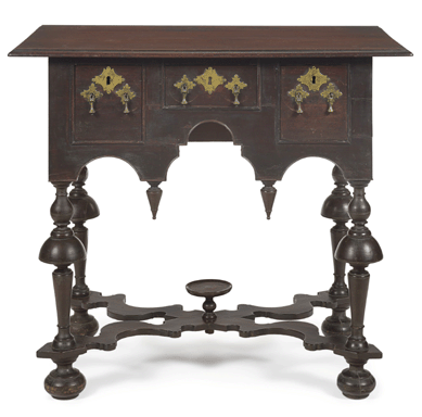 Conservator Alan Miller won a Philadelphia William and Mary cedar dressing table for $482,500. Philadelphia dealer Elle Shushan bought a rare miniature portrait on copper of Samuel Barrett by John Singleton Copley for $386,500. Delaware dealer James Kilvington purchased a set of six Philadelphia Chippendale side chairs for $170,500.