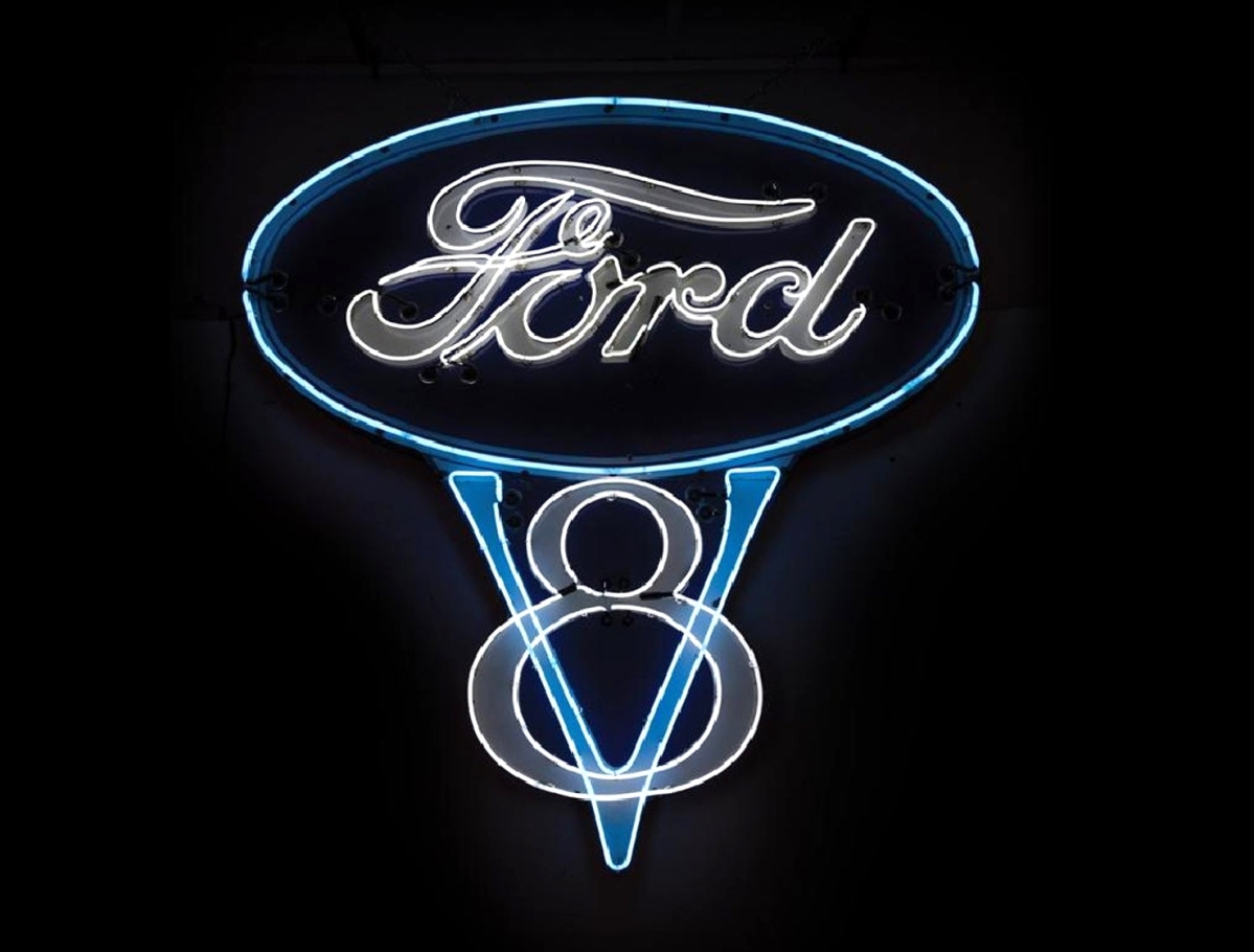 Dingman could afford to drive any car he wanted to, but he and his family primarily drove Ford Motor Company cars. He believed that cars were meant to be driven so he did and, with his wife’s encouragement, took up racing at the age of 60. He was also a Ford historian, collecting literature and photos of the Ford family. To showcase his cars, as the catalog says, “he amassed one of the highest quality collections of neon and porcelain signs and period posters.” The sale included everything in the building: signs, cars, tools, lifts, many rare spare parts and engines. The presentation of the sale was outstanding. The cars and everything else were spotless and RM had a large staff on hand. Catalog descriptions were detailed, photos showed pertinent details and RM assigned a numerical condition rating for each of the signs and explained the standards used. The catalog included charts of shipping and packing costs for signs.