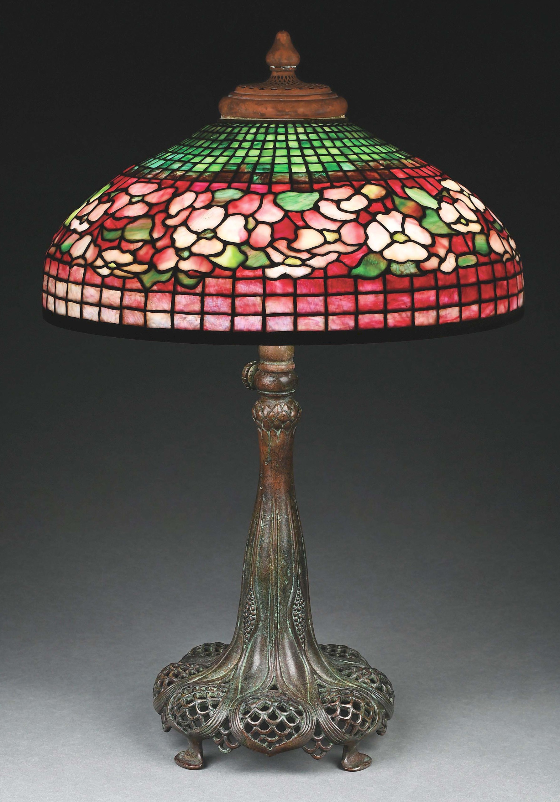 Bringing $54,120, and the second-highest finish, was this Banded Dogwood table lamp by Tiffany Studios, 31 inches tall, 20 inches in diameter ($50/70,000).