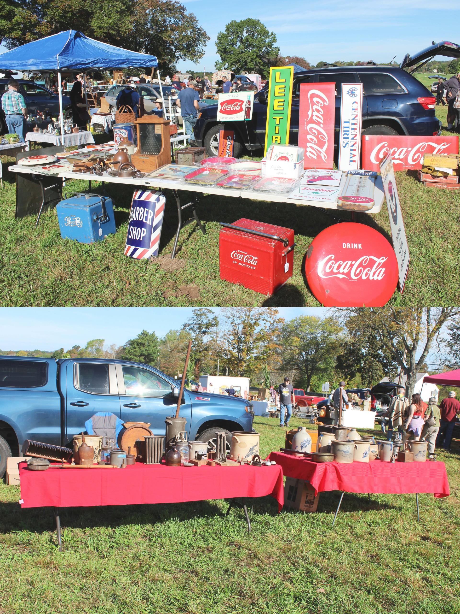 Joe Cosgrove, here with his brother, Pat, was back for a second year in Lebanon, after a good show last year. Joe, who offered a plethora of advertisement — with a specific focus on Coca-Cola — is from Columbia, Conn., and has been “collecting for a couple decades. I’m happy to pass [my collection] on.” Pat, situated in his own booth right next to his brother, was selling stoneware and primitives from their parents’ collection. “Our parents were collectors for a long time. We’ve been going to Brimfield as long as we can remember,” added Joe. He explained that he sources his collection from “pretty much everywhere,” including local auctions, tag sales and picking.