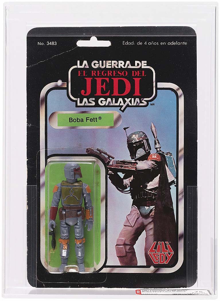YORK, PENN. — Leading the nearly 600-lot third installment of auctions Hake’s presented of the collection of Jeff Jacob was a Lili Ledy Star Wars Boba Fett action figure from the Return of the Jedi/La Guerra de las Galaxias: El Regreso del Jedi (1983). In its original blister package with fixed rocket, dark armor variety, it was the single highest graded example and sold for $77,884. According to catalog notes, Jacob noted he considered it to have been the crown jewel of his collection and said, “I do not think another [Lili Ledy] Fett will ever surface in the US.” The catalog also noted it was “quite possibly the rarest and most elusive production Boba Fett action figure released during the vintage era, the example offered here marks the first time a carded example has ever been offered at auction.” The October 16 auction realized $900,000. Prices quoted include buyer’s premium. For information, 866-404-9800 or www.hakes.com.