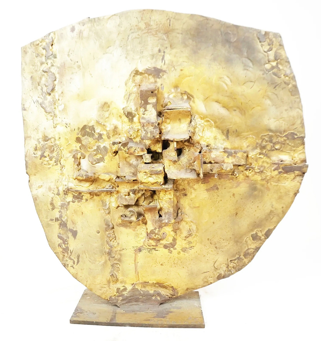 The 1,000-pound, 7-by-9-foot “Lovers,” a brushed aluminum relief sculpture with juxtaposed geometric forms, topped its high estimate, selling for $62,500 to a New York dealer bidding on the phone. This piece graced the front yard of Rosenthal’s property for more than 20 years.